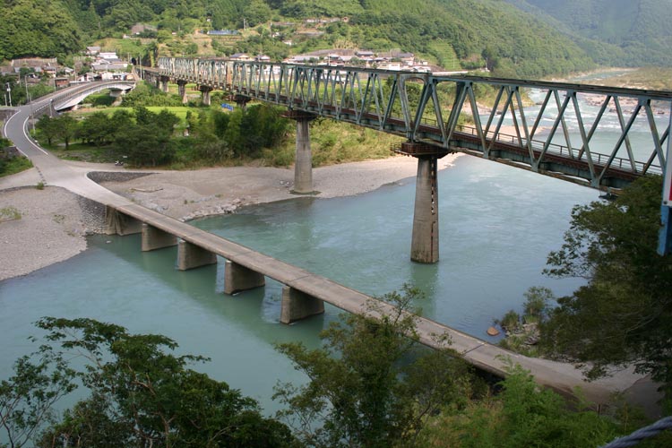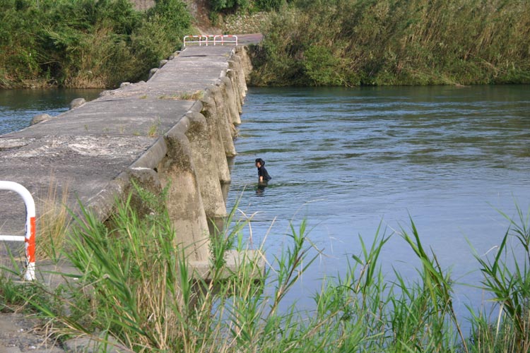 おじさんも 前に 沈下橋の 写真を 撮りに