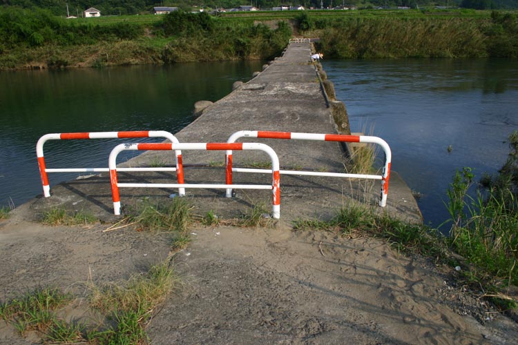 この沈下橋は かなり傷んでおり もう 人しか