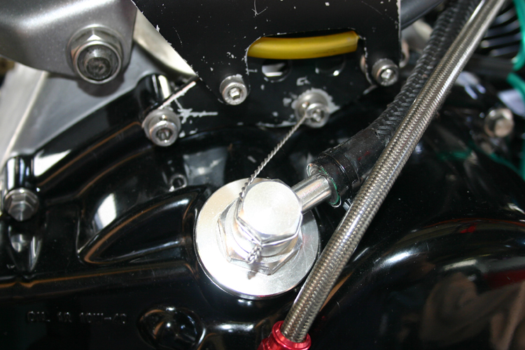 おじさんの場合は ドレインボルトは 油温計を 使っていますので ボルトを締めた上に ホースバンドを取り付けその上から ワイヤーロックで・・・・・。