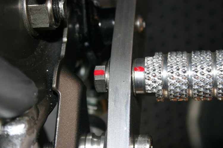 あと おじさん ナットは なるだけ セルフロックナットを 使っているんですが ステップは それが出来ないので 緩んでも すぐ分かる様に マーキングとボルトを スパナで 使える様 六角ボルトにして・・・!