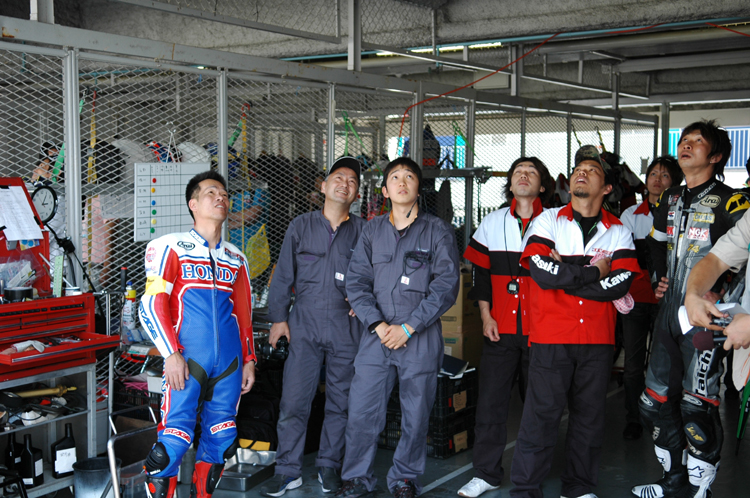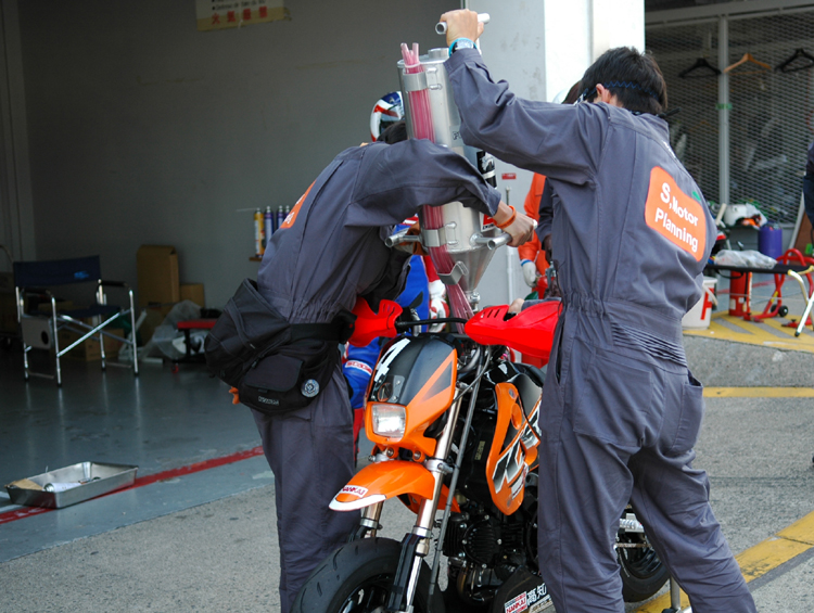 ヘルパーさんには 消火器を 持ってもらって PIT OUT すると すぐに西君と サインボード係で 4時間 頑張って 頂き・・・・・・・・(^^;