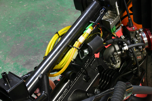 黄色はメーターのコードが かなり細く 断線が怖いのでチューブの中に投して レイアウトしました。